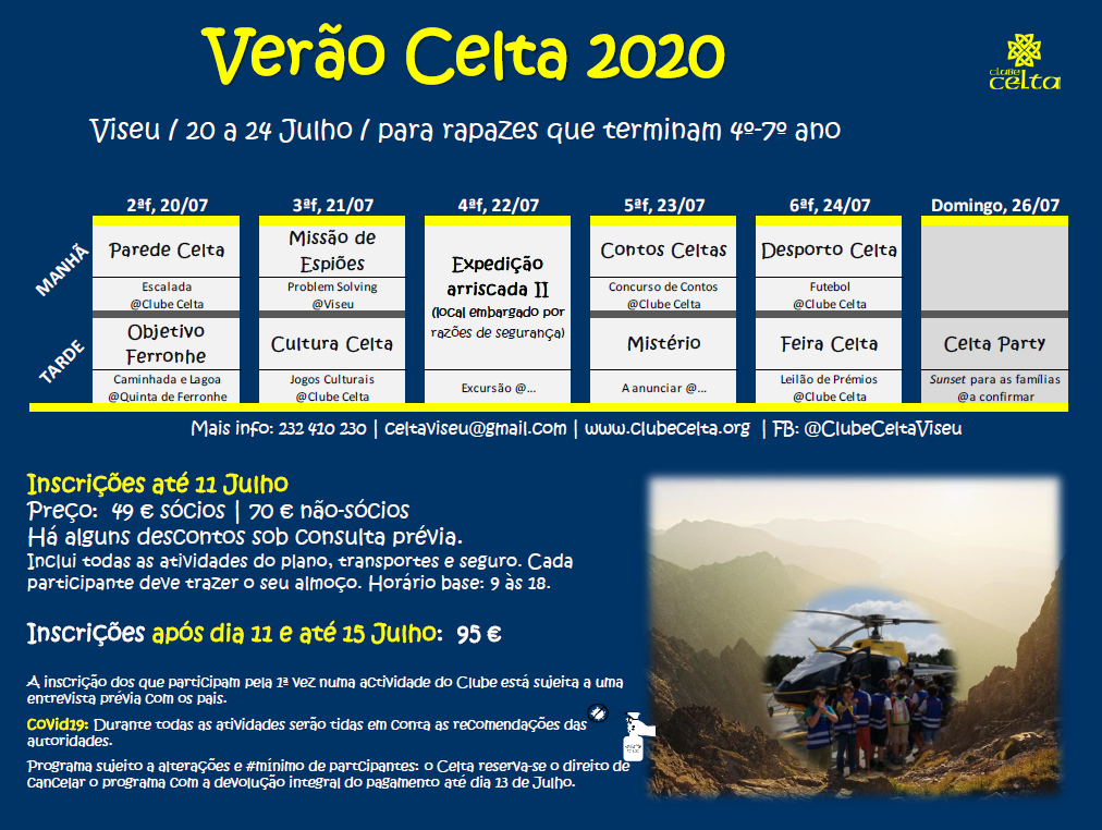 Verão Celta 2020 Julho 3, 2020 Clube Celta Uncategorized +Info e inscrições até 11 de Julho para celtaviseu@gmail.com ou 232 410 230 FolhetoDescarregar